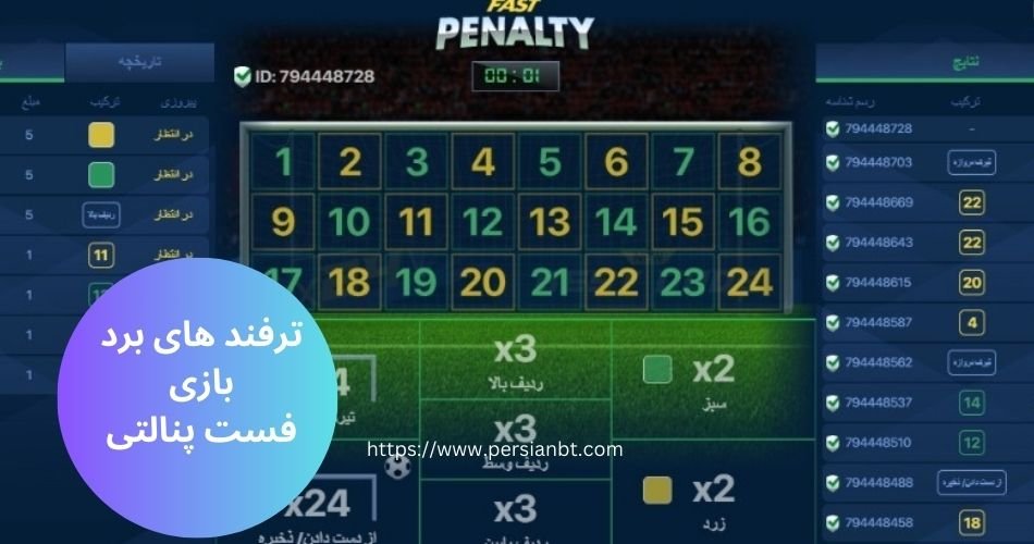 بازی فست پنالتی، یکی از محبوب ترین و هیجان انگیز ترین بازی های قمار آنلاین است. در این بازی، شرکت کنندگان به چالشی جذاب در مسابقات پنالتی می پردازند و تلاش می کنند تا با استفاده از شرط بندی های مناسب و ترفند های کاربردی، برد خود را به دست آورند. این بازی، ترکیبی از استراتژی، شانس و هیجان است و به بازیکنان فرصتی را می دهد تا تجربه یک رقابت هیجان انگیز را در فضای آنلاین تجربه کنند.